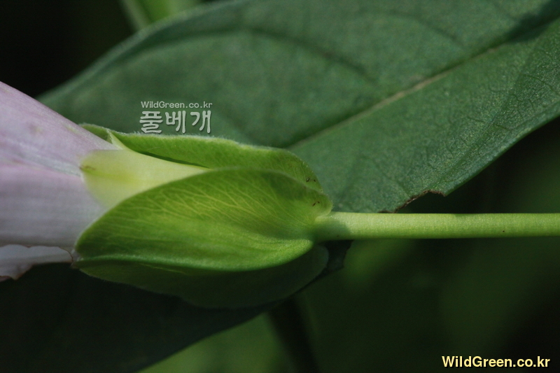 이상태검색집에는 큰메꽃이 "포는 꽃받침보다 다소 작다(2-2.5cm). 화경 상단에 날개가 없다."