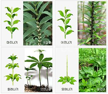 줄기에 대한 잎의 배열 방식.
