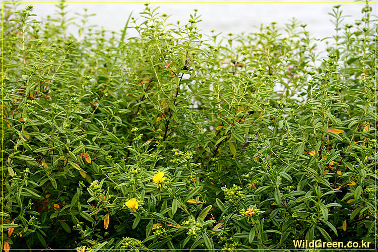 갈퀴망종화라고도 한다. 미국 원산이다. 높이 1∼2m이고 줄기는 갈색이다. 나무껍질이 얇은 막으로 벗겨지며 가지를 많이 친다. 잎은 마주나고 길이 1∼5cm, 나비 5∼16mm로 긴 타원형이며, 끝이 둔하고 뒷면은 백색이다. 잎겨드랑이에 나는 작은잎은 정상 잎보다 작고 표면에 점이 돋아 있다.