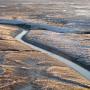 오늘 이른 아침 일출 때의 강화 동막 갯벌입니다. 갯골 옆의 흰 소금처럼 보이는 것은 짠 바닷물이 언 것이랍니다.