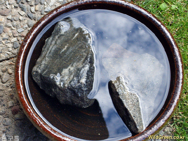 화분이 우리의 옹기와 비슷하여 작은돌을 넣고 물을담아둔