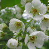 • 꽃은 5월에 피며 지름 1-1.5cm로서 백색이고 총상화서는 새가지 끝에서 처지며 길이 10-15㎝로 털이 없고 밑부분에 잎이 있으며 소화경은 길이 5-20mm로서 털이 없다. 꽃받침잎과 꽃잎은 각각 5개이다.
