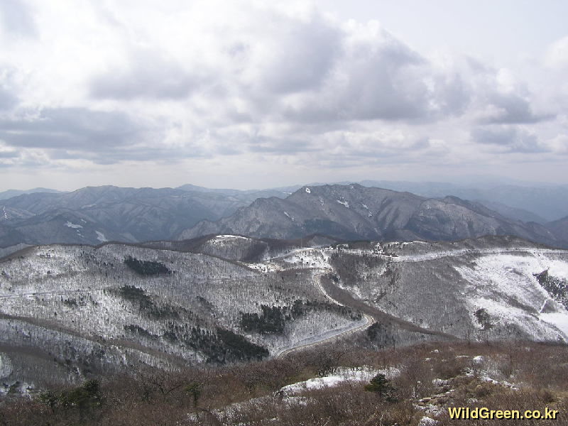왼쪽에는 태백산의 문수봉 천제단 장군봉으로 이어져 있었고
