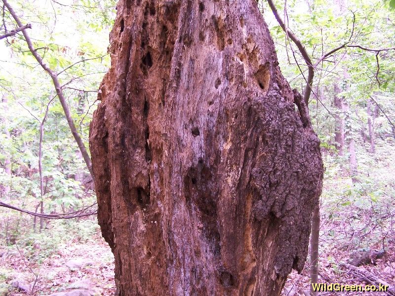 어쩌다가  부러진  풍장목  참나무  등걸엔  딱다구리의