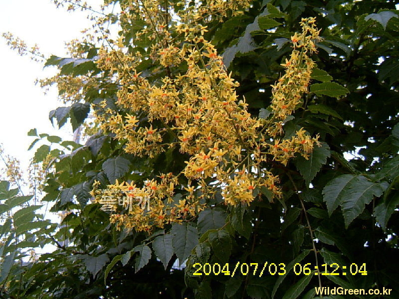 회화나무, 말발도리나무, 느티나무, 자귀나무 그리고 모감주나무 등.