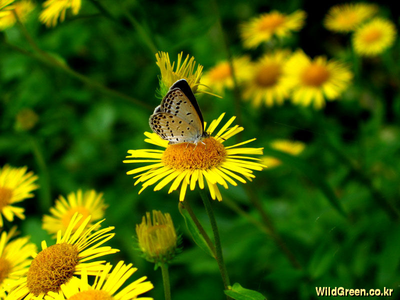 노오란 이 꽃 이름은 모르겠으나 나비 무리들을 담았어요 ...국화과의 금불초로 확인 하였습니다.