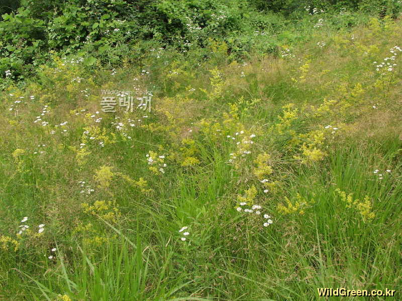 중앙숲속 논골을 내려 보는 무덤가 주위로 상당한 무리가 등갈퀴나물과 어울려 살고 있슴미다 [동정키] a. 花序는 원추상 총상 b. 꽃은 녹색~황록색 c. 줄기에 뚜렷한 능각 있슴. 소엽은 장도란형~피침형 예두~예첨두. 뒷면은 녹색..................긴잎꿩의...