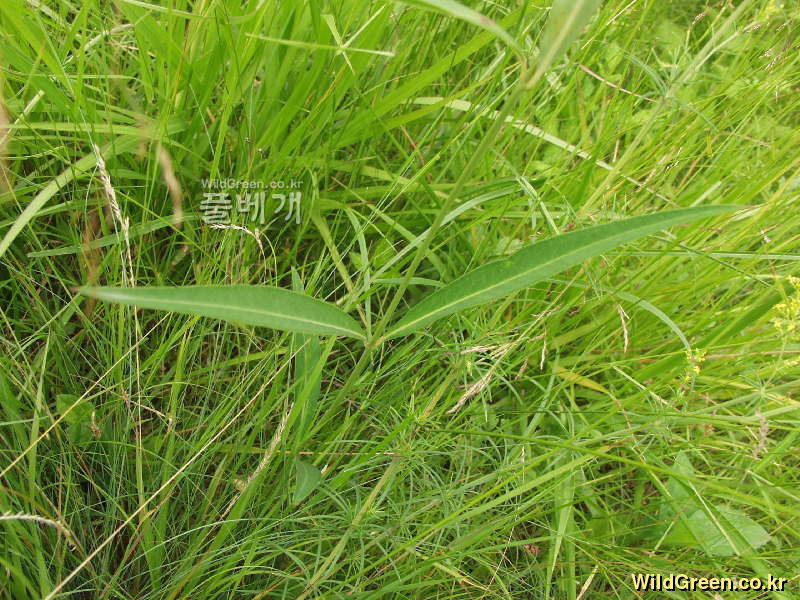 중앙숲속 논골을 내려 보는 무덤가 주위로 상당한 무리가 등갈퀴나물과 어울려 살고 있슴미다 [동정키] a. 花序는 원추상 총상 b. 꽃은 녹색~황록색 c. 줄기에 뚜렷한 능각 있슴. 소엽은 장도란형~피침형 예두~예첨두. 뒷면은 녹색..................긴잎꿩의...