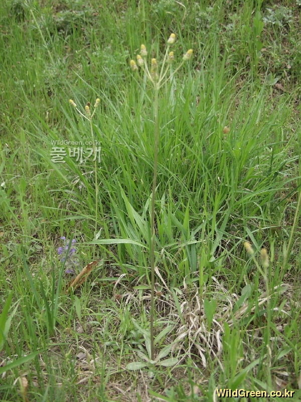 중앙숲속 논골을 내려 보는 무덤가 주위로 상당한 무리가 등갈퀴나물과 어울려 살고 있슴미다 [동정키] a. 花序는 원추상 총상 b. 꽃은 녹색~황록색 c. 줄기에 뚜렷한 능각 있슴. 소엽은 장도란형~피침형 예두~예첨두. 뒷면은 녹색..................긴잎꿩의...